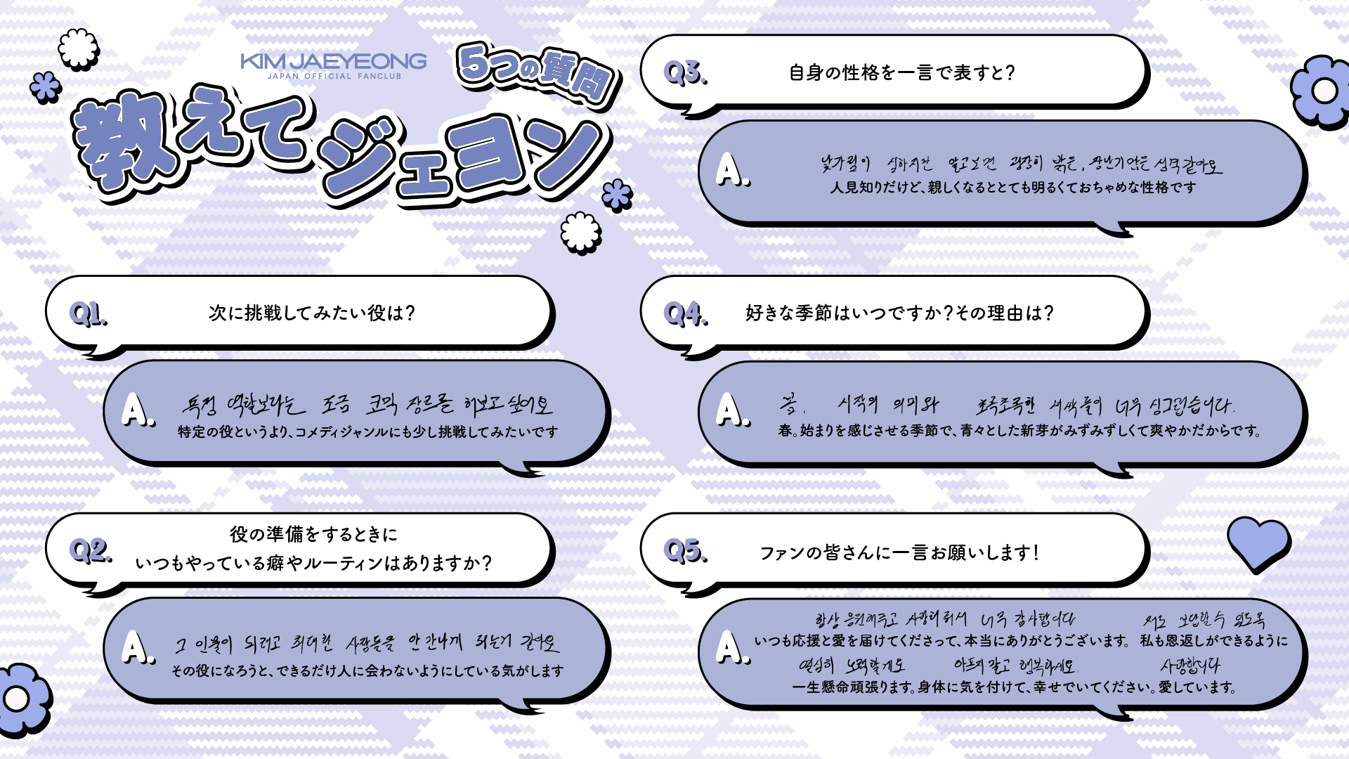【GALLERY更新】キム・ジェヨンから直筆Q&A到着!